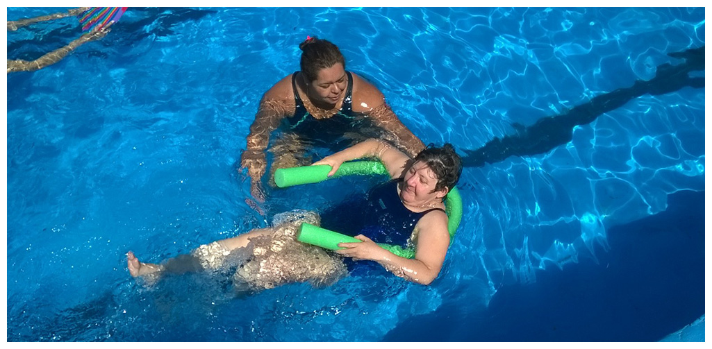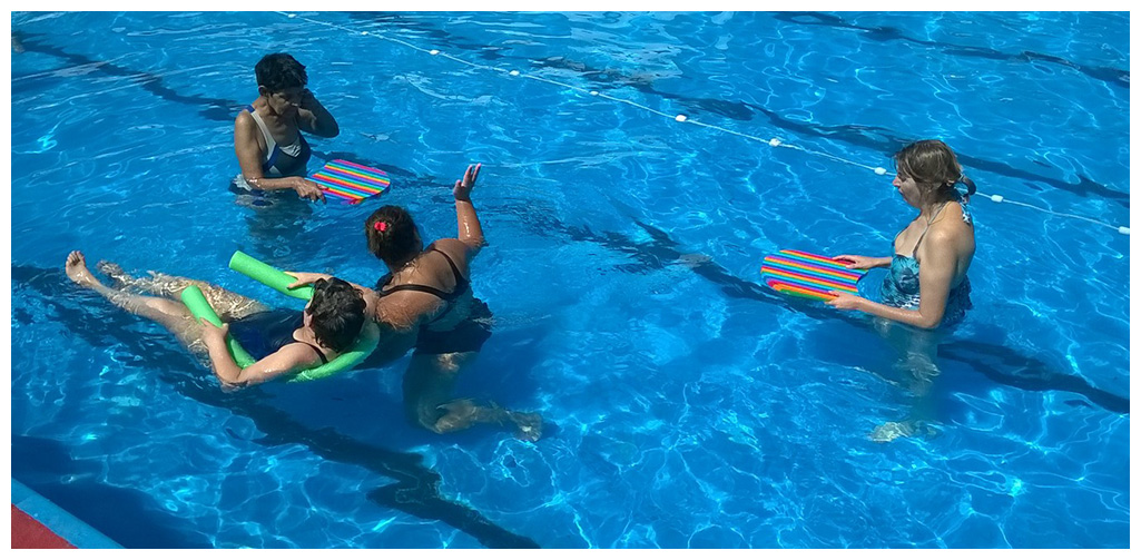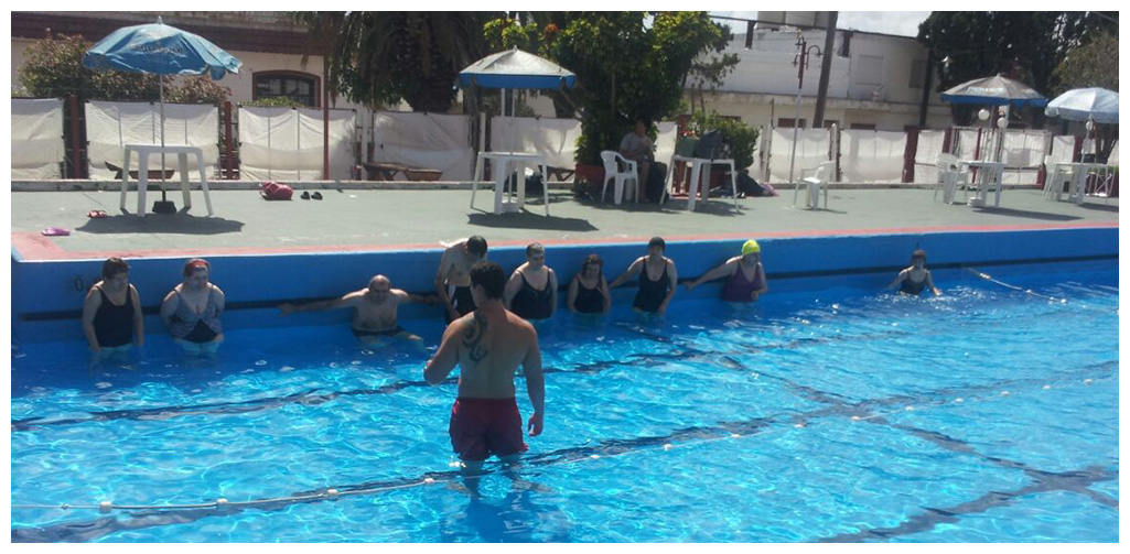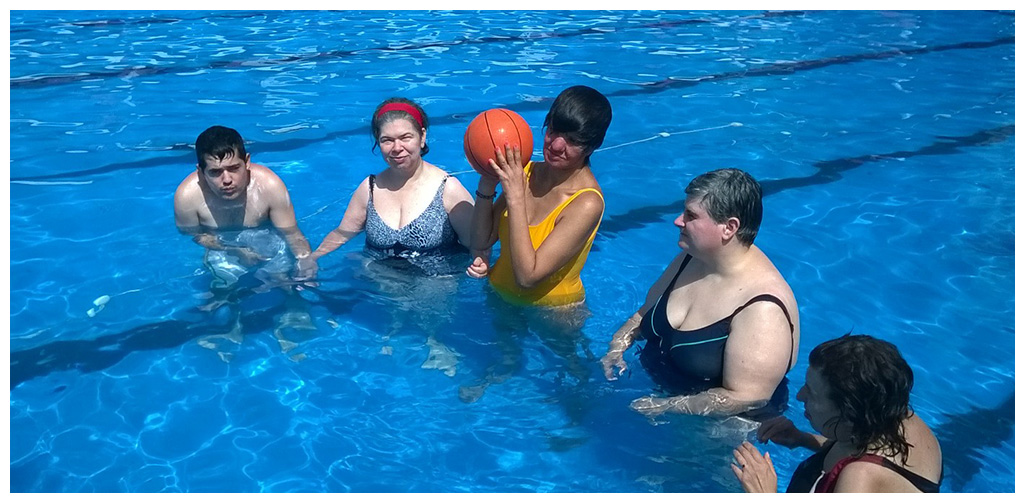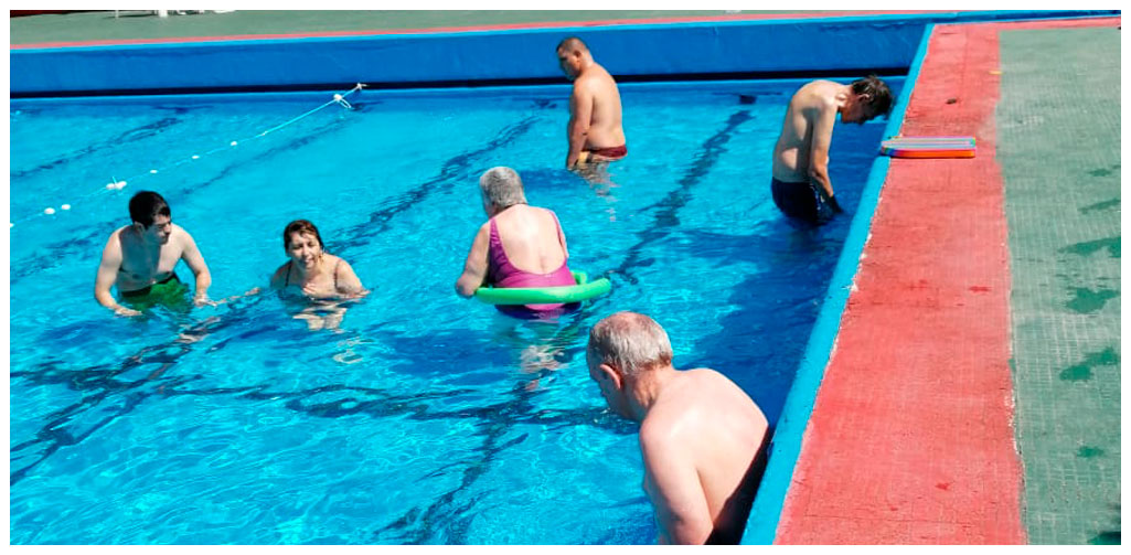En el verano seguimos desarrollando las actividades de la vida diaria y las habilidades sociales tendientes a que los concurrentes y residentes puedan desenvolverse en las diferentes situaciones sociales. La pileta es otro ámbito en el cual podemos seguir estimulando dichas habilidades, ya que el medio acuático proporciona placer y mayores posibilidades de movimientos y de registro corporal.